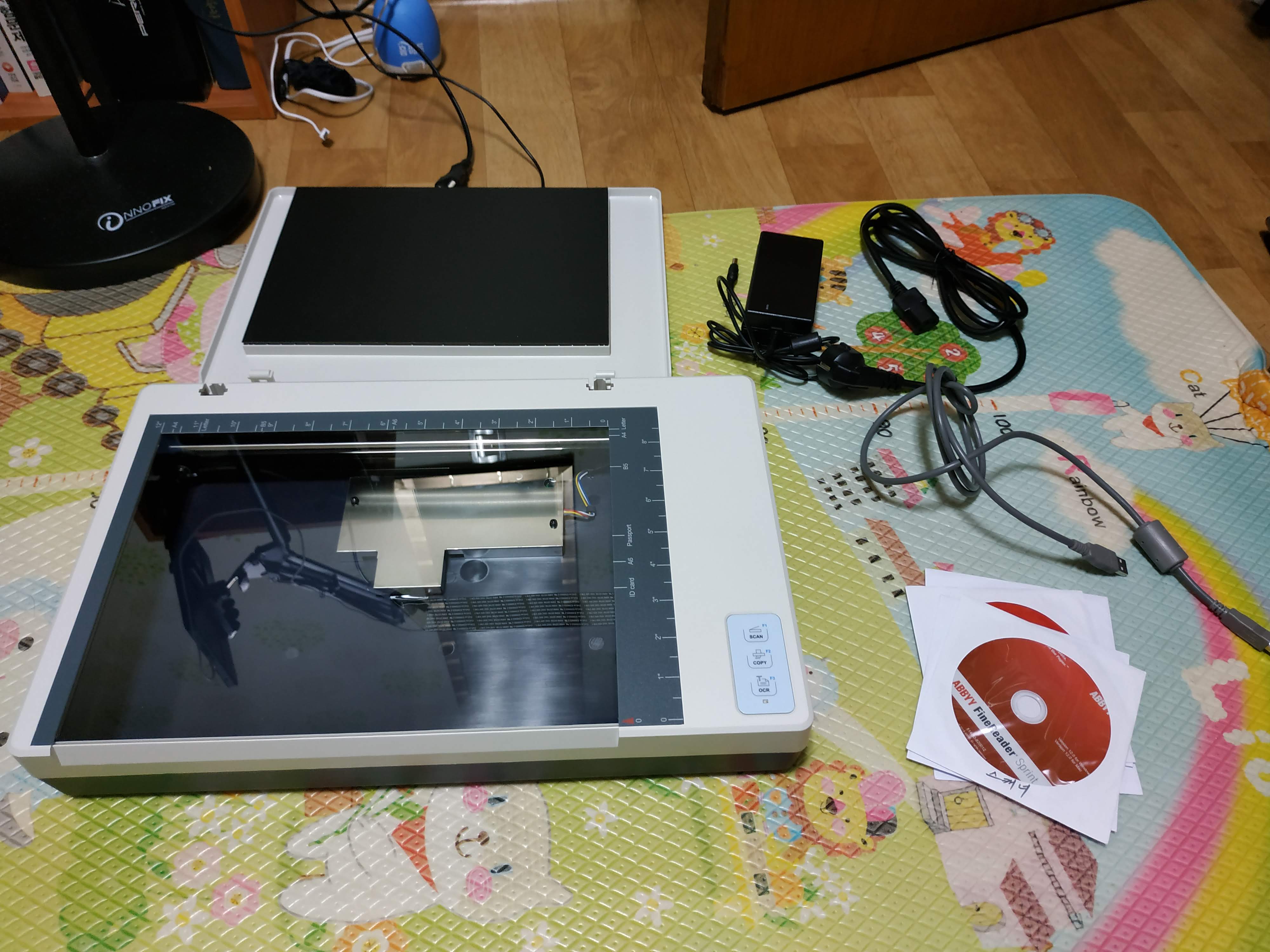 판매자분이 아버님 대신 판매하는거라 북스캐너에 대해 전혀 몰라서 약간 불안한 감이 있었습니다만 테스트해보니 정상적으로 작동했습니다. 첫 스캔전에 자체 테스트를 하는지 좀 시간이 걸리는데 그 뒤로는 쭉쭉 잘나가네요.