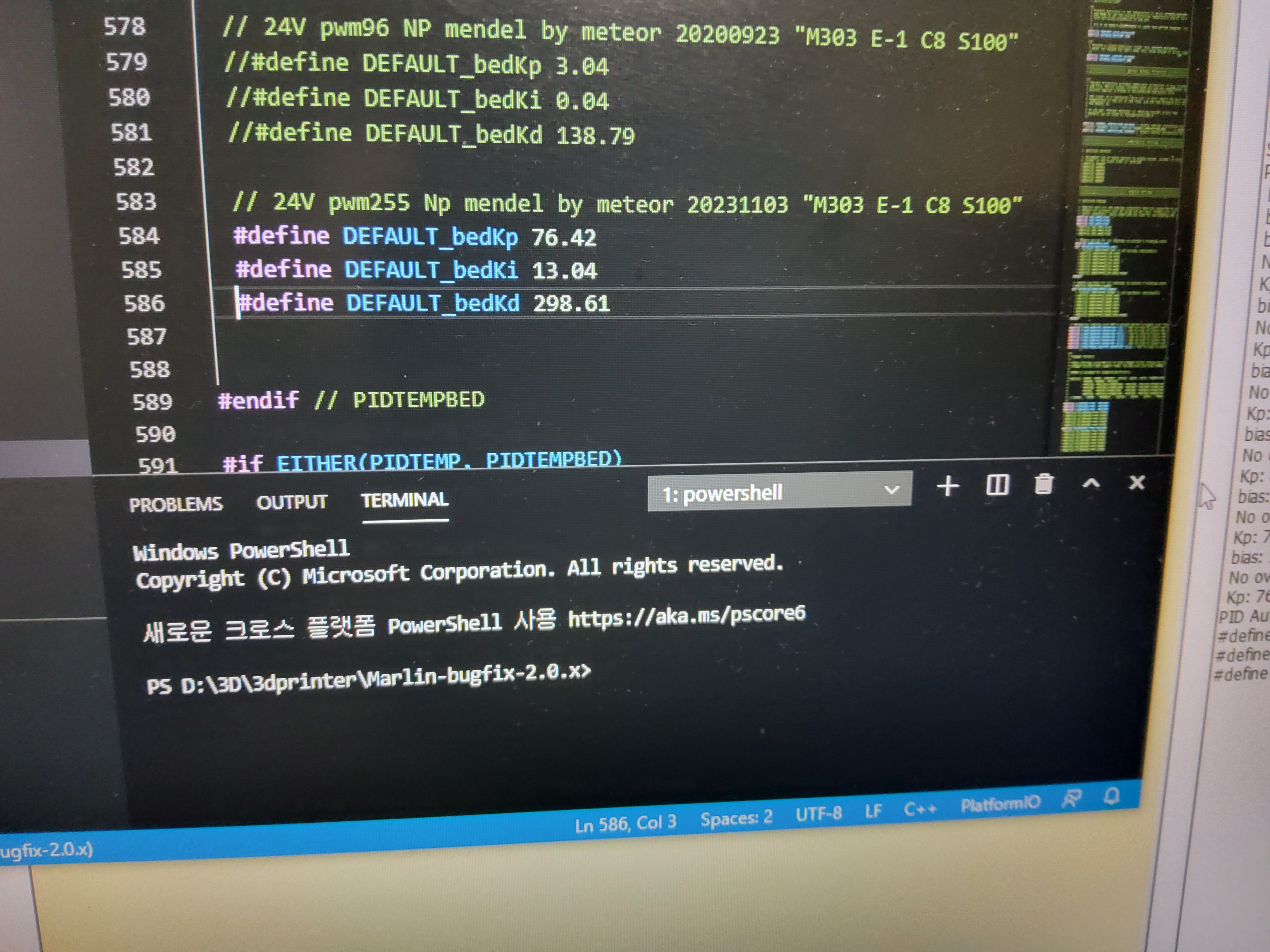 그리고 핫베드 PID 오토튠을 해서 펌웨어에 적용했습니다.
