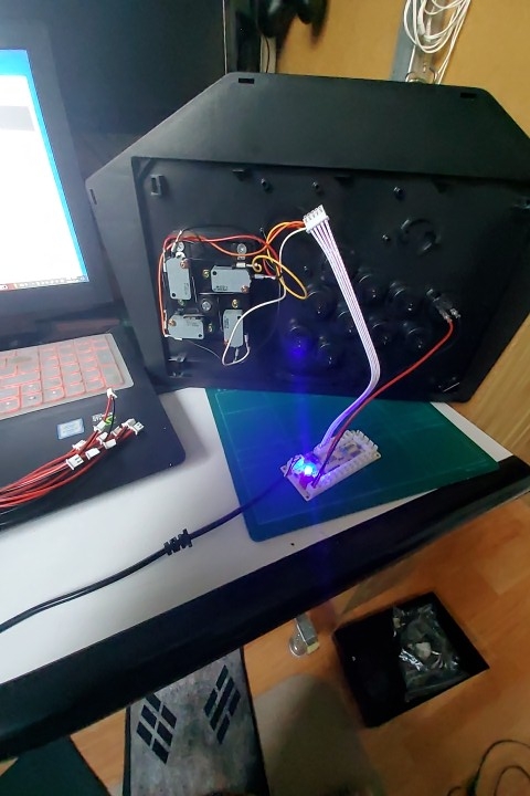 일단 버튼하나랑 스틱만 연결해서 테스트 했는데 잘되네요. 스틱 결선은 2개는 맞고 2개는 틀리더군요. 마이크로 스위치 단자를 빼서 고쳐서 연결했습니다.